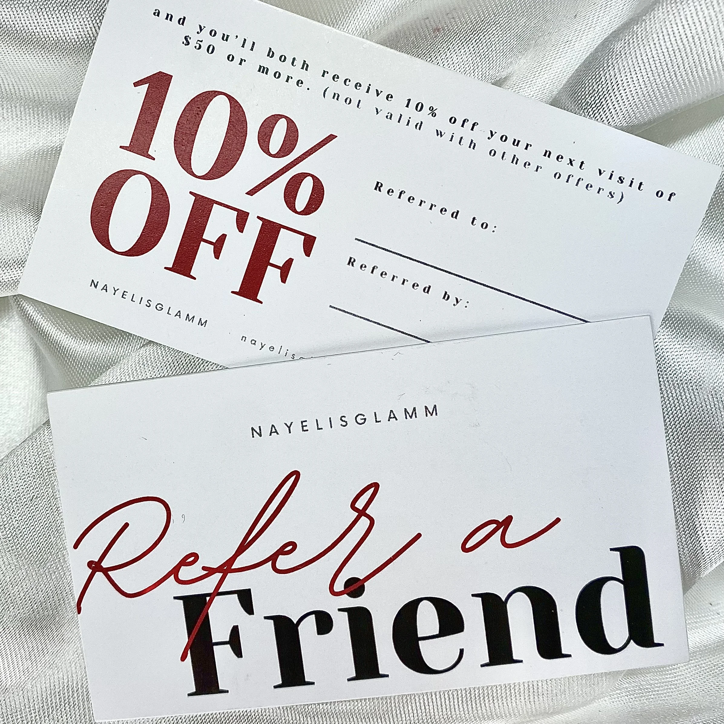 New clients must present referral card at your appointment OR enter who you were referred by in the forms when booking your first appointment!